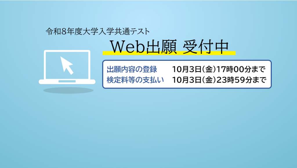 大学入試センターは、2025年9月16日より2026年度(令和8年度)大学入試共通テストのWeb出願を開始した。さらに、Web出願元年である、受付初日の出願状況を公表した。 初日となる2025年9月16日午後5時時点での出願総数は2,945人と、前年度の郵送受付方式と比べて7,455人減少した。初日 … 続きを読む 【共通テスト】2026年度よりWeb出願を開始|初日の出願者数は減少傾向
